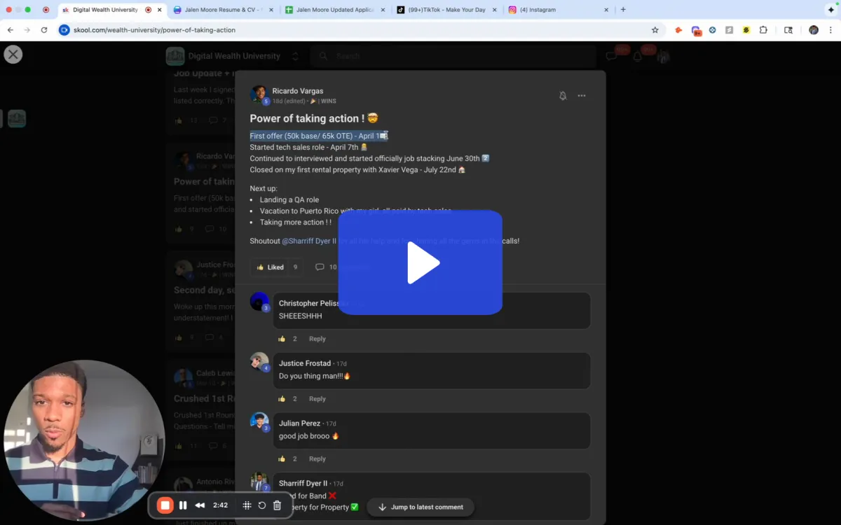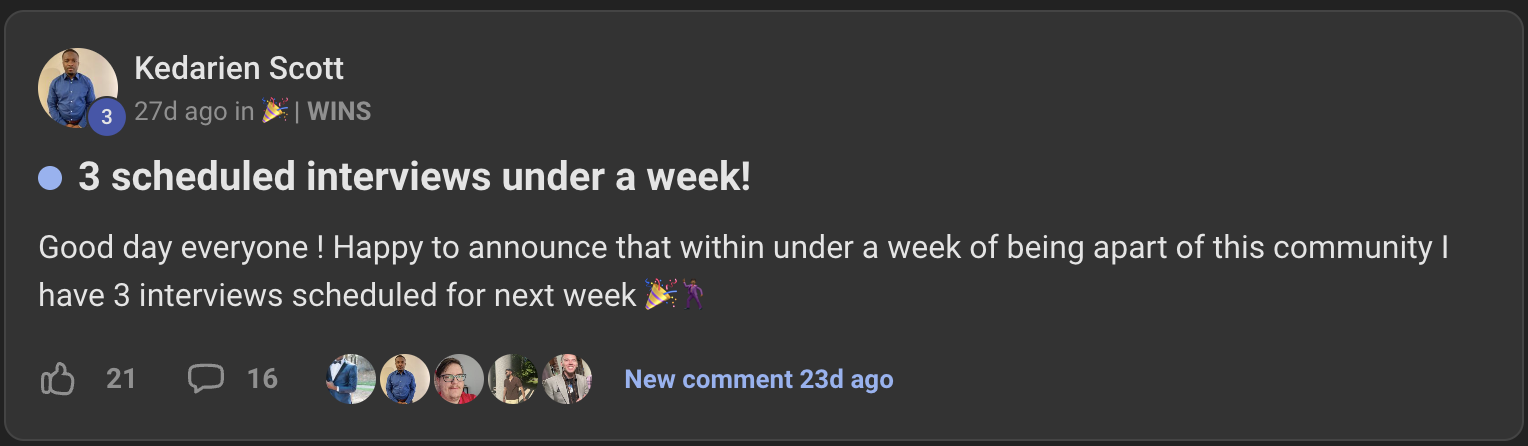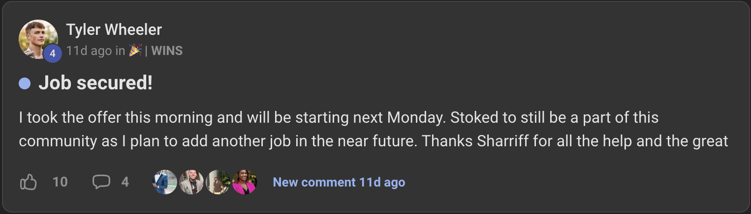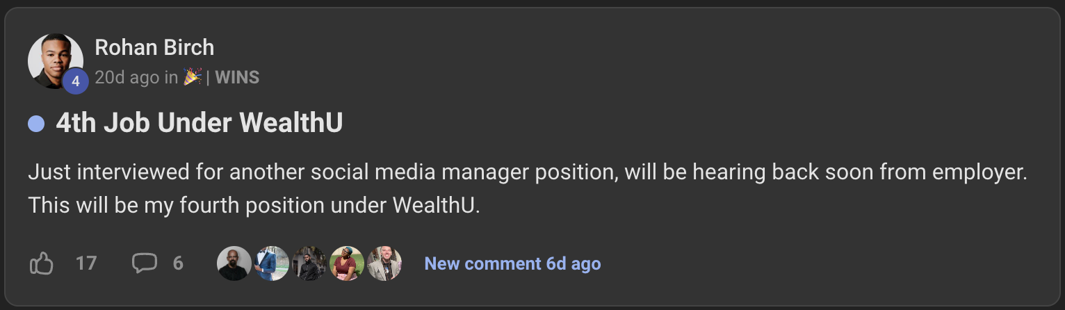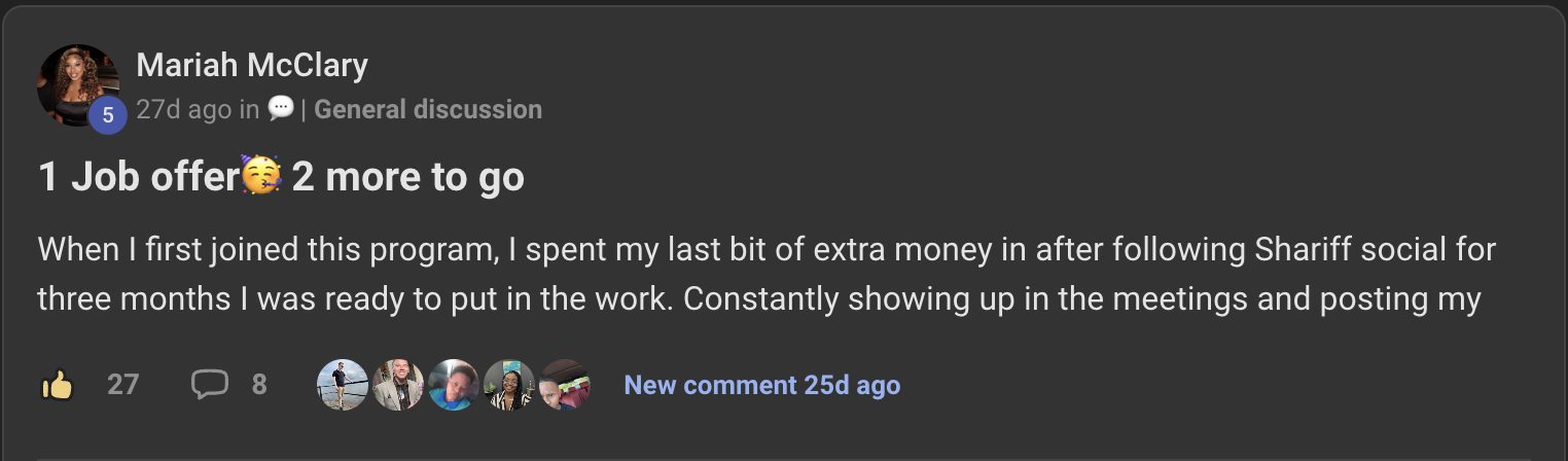 "I went from a broke, dead-end warehouse job to a six-figure remote career without a degree. Tired of seeing great people get ghosted by online applications, I built the system I wish I'd had to help me land high-paying roles without the trial and error and hard work. Our proven process is designed to help you land a high-paying remote role in just 30 to 45 days " - Sharriff, Founder @ Digital Wealth University